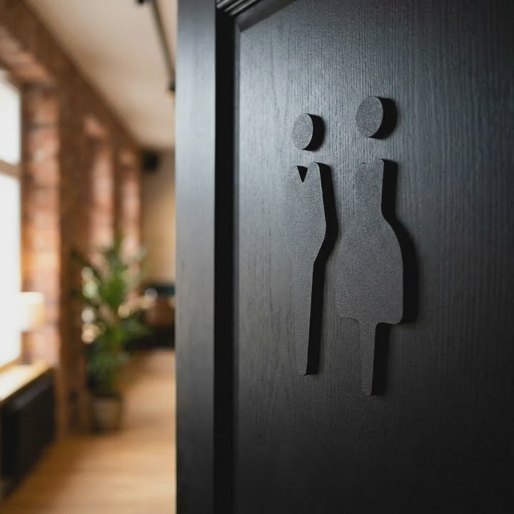 Male & Female Toilet Sign | Black MDF | Unisex Icons